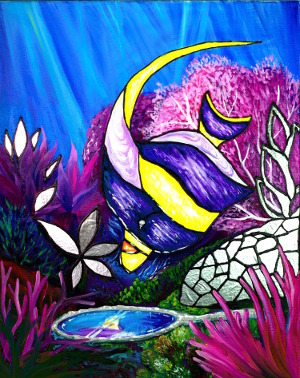 The imagery in this card is meant to evoke reflection everywhere that can be seen. There are the things we seek to reflect ourselves, and there are the things which fate delivers to us as timely reflections of ourselves as we currently are. The long dorsal fin of the Moorish Idol fish is meant to remind of an antenna, picking up a signal from the universe and converting it directly into understanding, without a word needing to be spoken.